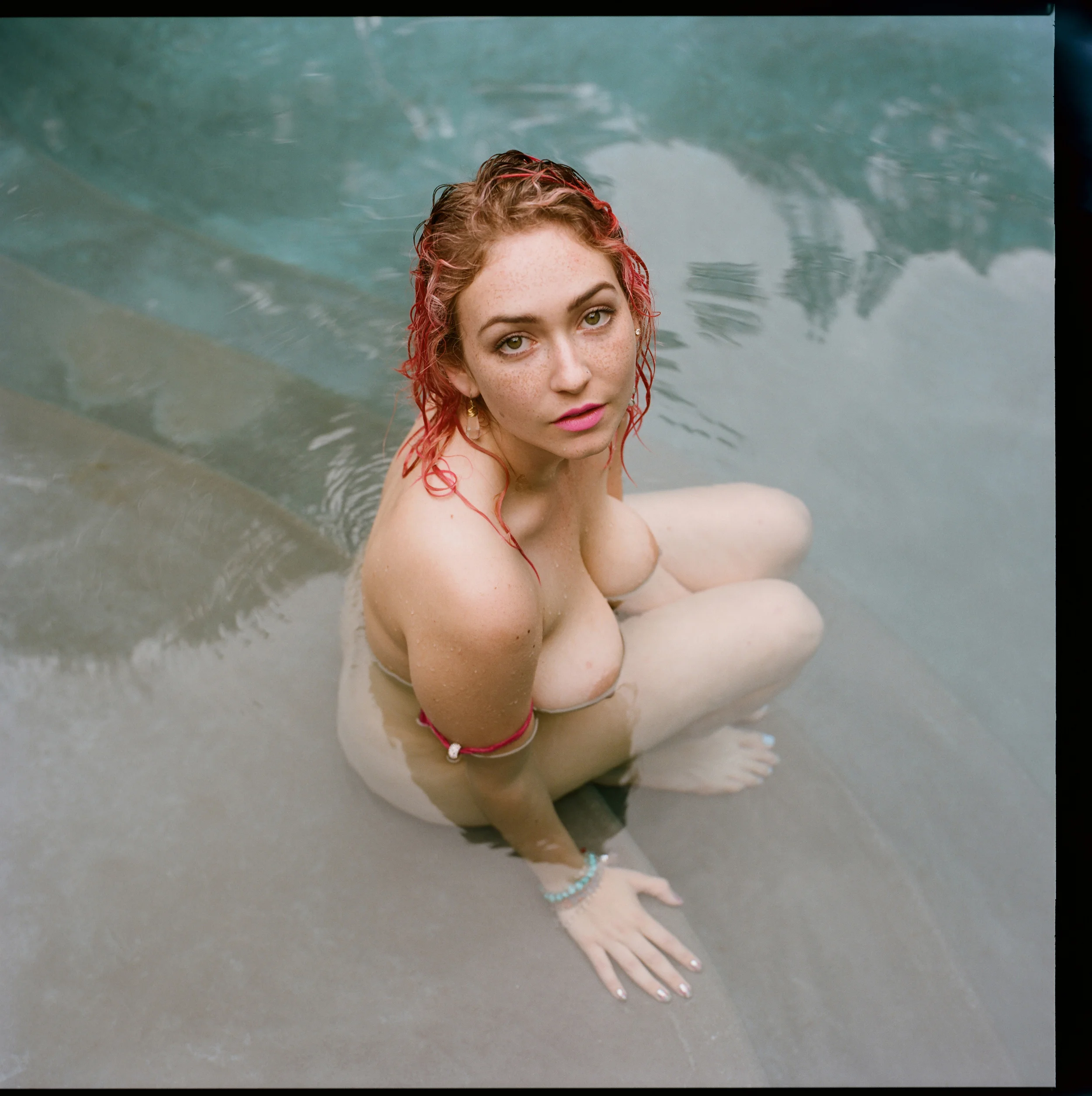 On Kimi's set this summer I was reunited with my childhood friend Kaya. During my down time I took a few rolls of Kaya in the pool. These were also the first photos I took with the square format camera.